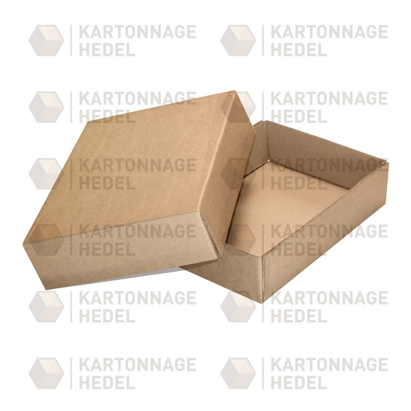 Dit deksel model is gemakkelijk met plakband op te zetten. Deze doos is te gebruiken als losse deksel voor een palletdoos of vouwdoos 0200 en is geschikt om te gebruiken als bodem of deksel voor een losse huls, palletdoos of vouwdoos 0200. Het model is te bestellen met of zonder handgrepen. Het minimumaantal is 10 dozen.